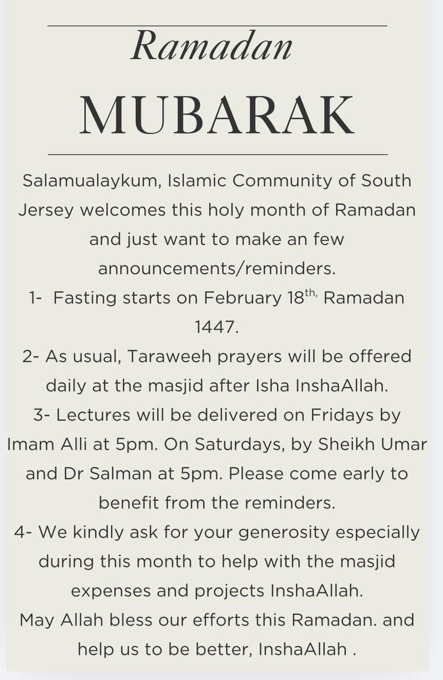 The Islamic Community of South Jersey is united by the grace of Allah, who is the Most Gracious, and the most merciful. We are first and foremost an Islamic religious organization, and a charity organization based in Southern New Jersey. Our programs and activities are religious in nature, and it includes charity outreach missions to different parts of the community in order to help the needy and underprivileged.